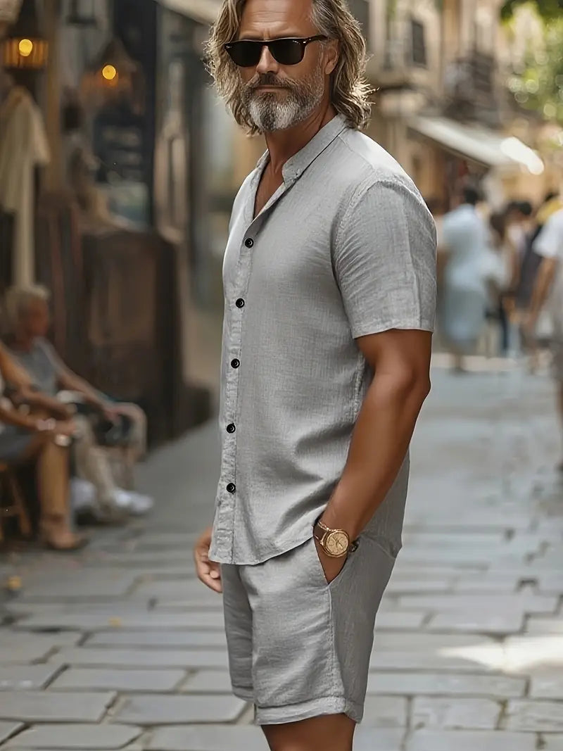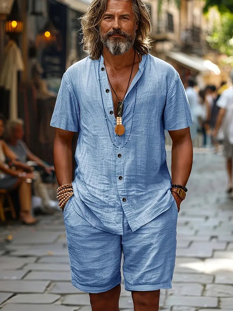 El Conjunto La Costa™ Doble no es solo ropa — es una declaración de estilo y libertad. Diseñado para hombres que valoran la comodidad sin renunciar a la elegancia, combina un corte relajado con un tejido premium de algodón puro, suave, ligero y transpirable. Perfecto para las tardes de primavera, escapadas a la playa o paseos urbanos con un toque de distinción.